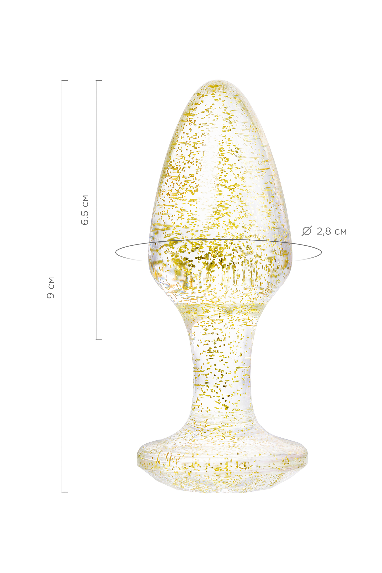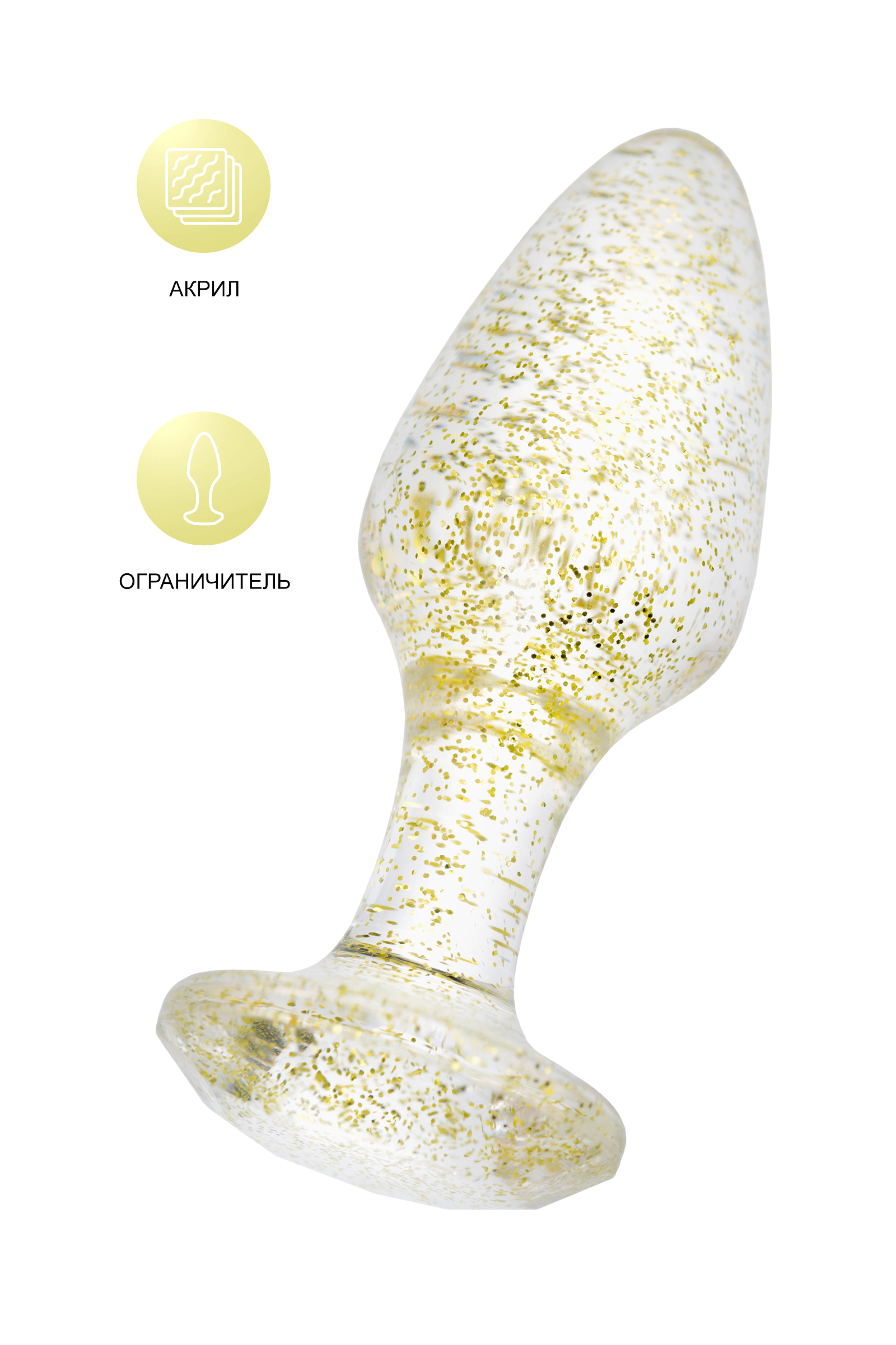 Анальная втулка классической формы выполнена из акрила. Прозрачный материал с золотистыми блестками внутри. Ограничительное основание обеспечивает безопасность при использовании, поэтому втулку высоко ценят не только опытные любители анального секса, но и новички. Рекомендуем использовать до и после применения - дезинфицирующее средство для игрушки, чтобы обеспечить длительное скольжение и комфорт интимных отношений, рекомендуем использовать анальную смазку на водной основе. Хранить при температуре не выше 35 градусов, избегать попадания прямых солнечных лучей.